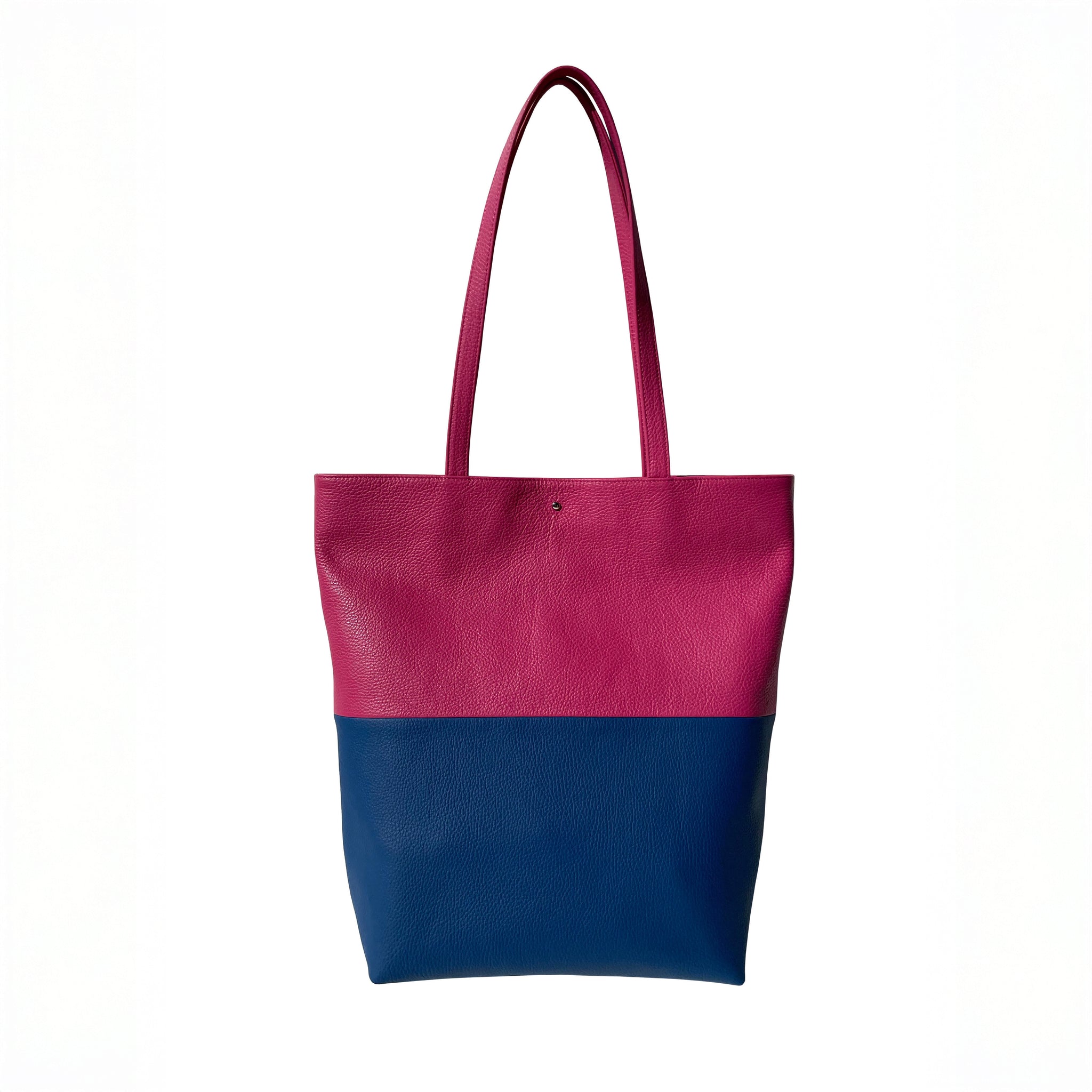 Schlichter Rundknopfverschluss und schulterlange Riemen.
