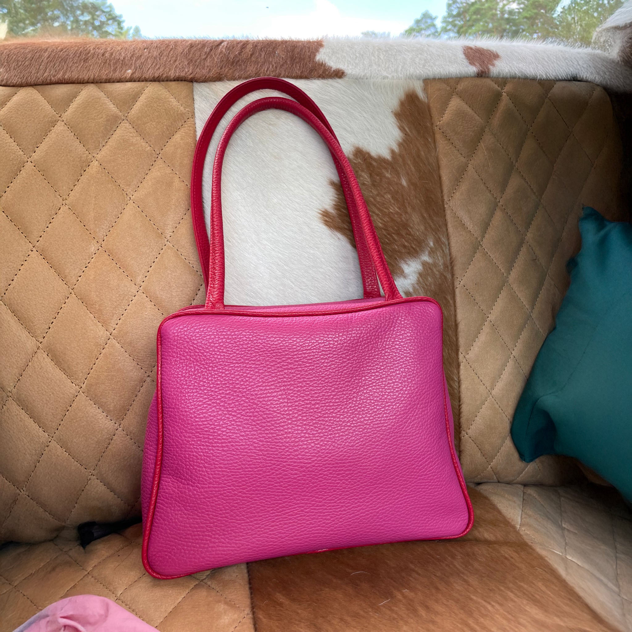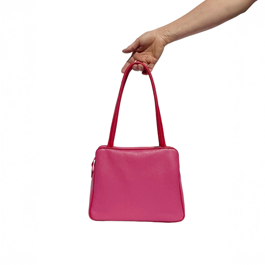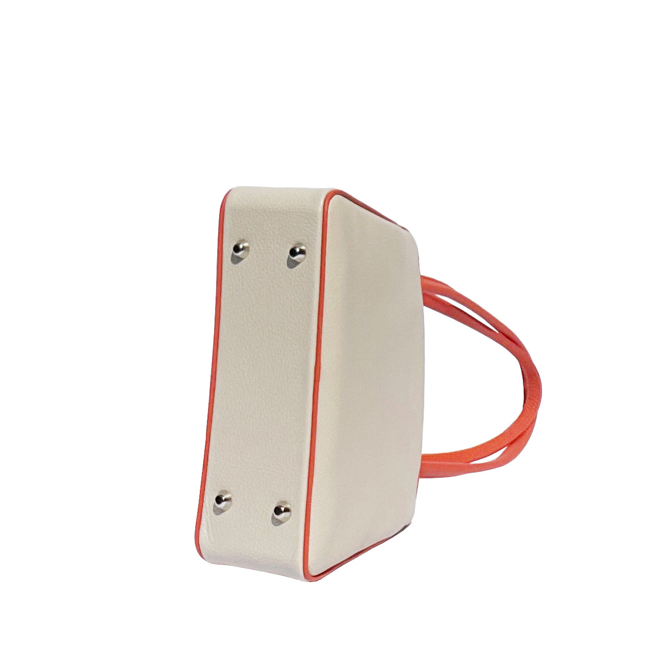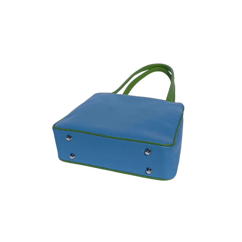 Kleine weiche Handtasche im Bowling-Stil mit schulterlangen Rundriemen in einer 2 Farbkombination.